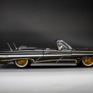 The 1961 Chevrolet Impala Open Convertible Lowrider in Black embodies the epitome of style and innovation, setting itself apart from its competition in the automotive industry with its iconic design and unique customization. What distinguishes this car is its lowrider modification, a cultural phenomenon that originated in the Chicano communities of Los Angeles. The Impala’s sleek lines and graceful curves are accentuated by its lowered suspension, giving it a distinctive and eye-catching stance. The all-black exterior adds a touch of sophistication and elegance to the vehicle, while custom chrome accents and intricate paintwork enhance its visual appeal. With its blend of classic design, cultural significance, and meticulous customization, the 1961 Chevrolet Impala Open Convertible Lowrider in Black stands as a true symbol of automotive artistry and individuality, captivating enthusiasts and onlookers alike with its unique blend of style and craftsmanship.